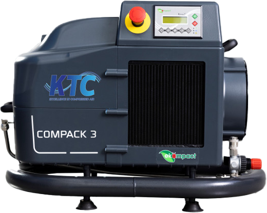 Skruekompressor med roterende element, oljesmurt og én-faset direkte drift. Kompakt og stillegående.